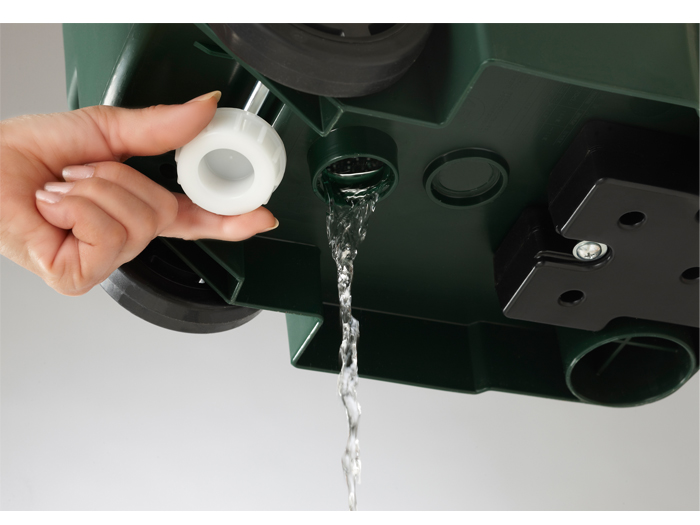 排水や丸洗いを楽にする、排水栓付き